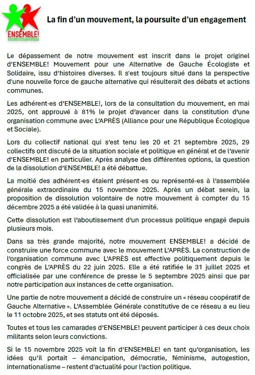 * SAMEDI 6 SEPTEMBRE : MARCHE POUR GAZA et LA PALESTINE - Stop génocide, des sanctions contre Israël15h - départ place Bellecour* LUNDI 8 SEPTEMBRE : Vote de la motion de confiance au gouvt Bayrou à l'Assemblée ! "pot de départ de Bayrou" aux Terreaux en soirée* MERCREDI 10 SEPTEMBRE : journée "Indignons-nous / Bloquons tout !"Nombreuses initiatives* JEUDI 18 SEPTEMBRE : Journée de mobilisation intersyndicalegrève et manifestations